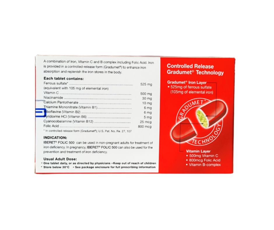 Iberet Folic 500 can be used in non-pregnant adults for treatment of iron deficiency. In pregnancy, Iberet Folic 500 can also be used for the prevention and treatment of iron deficiency.