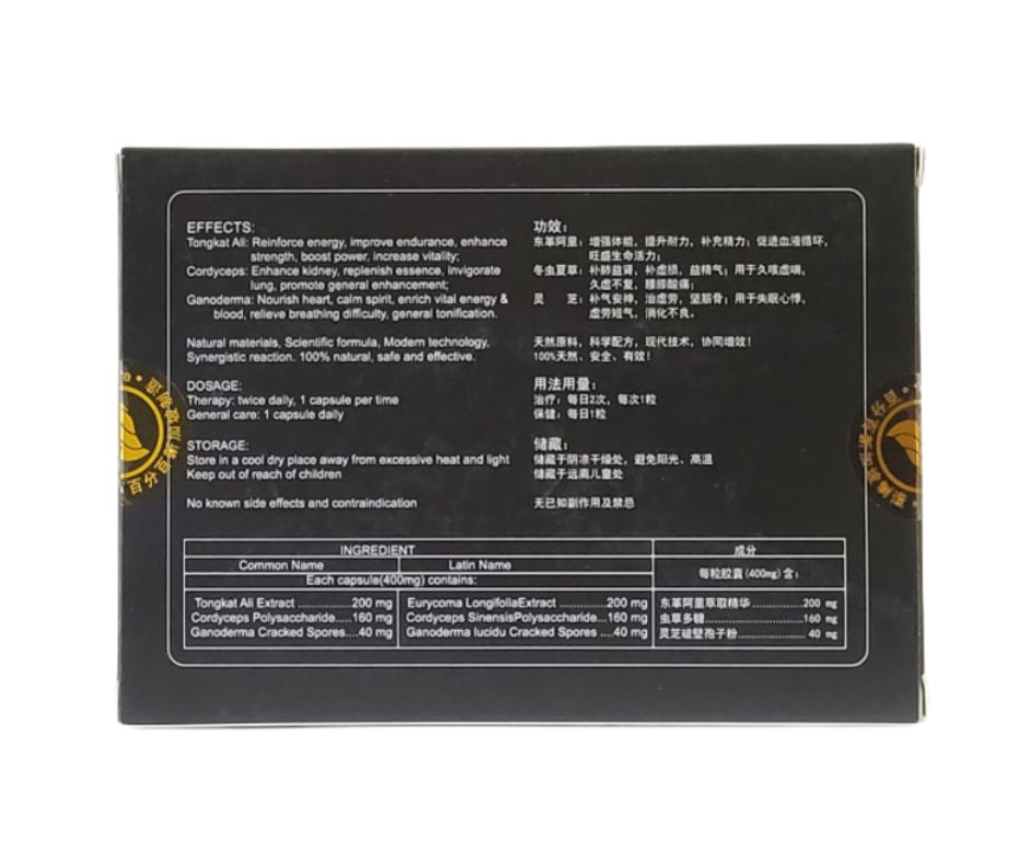 Tongkat Ali : Reinforce energy, improve endurance, enhance strength, boost Power, increase vitality;