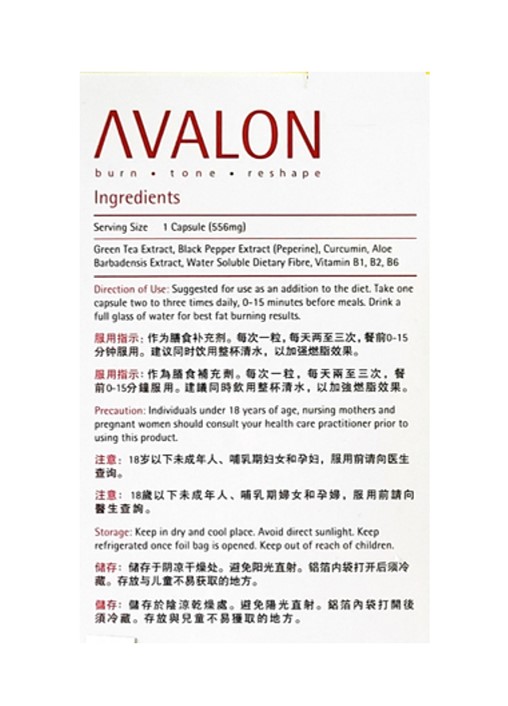 Avalon Fat Burner Plus is an improved formula of AVALON Fat Burner, designed to be 5X stronger and more effective than regular fat burning formula. It is an all-natural healthy slimming formula that helps to increase one’s metabolic rate and burn excess fats. Avalon Fat Burner Plus does not contain any diuretic, laxative, appetite suppressant, ephedrine, and caffeine, and thus will not induce dehydration, diarrhoea, anorexia, and heart palpitation.