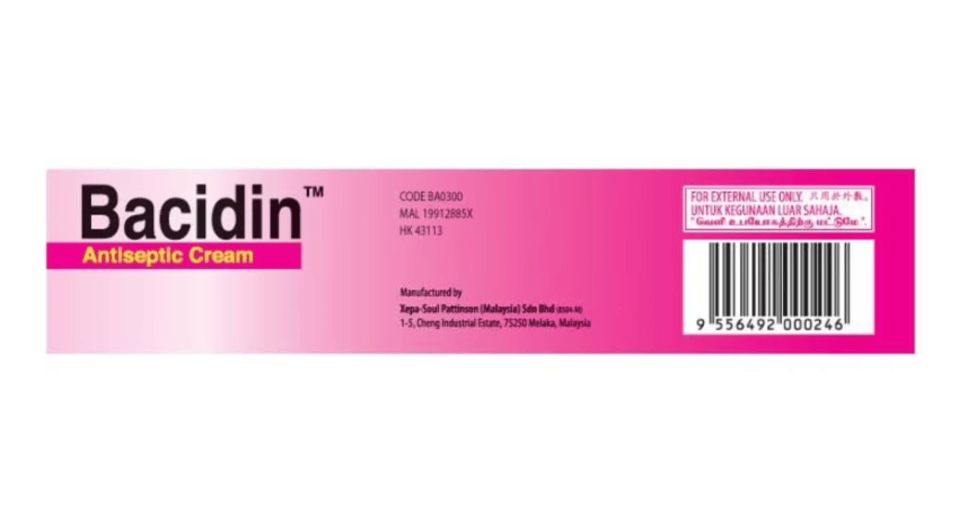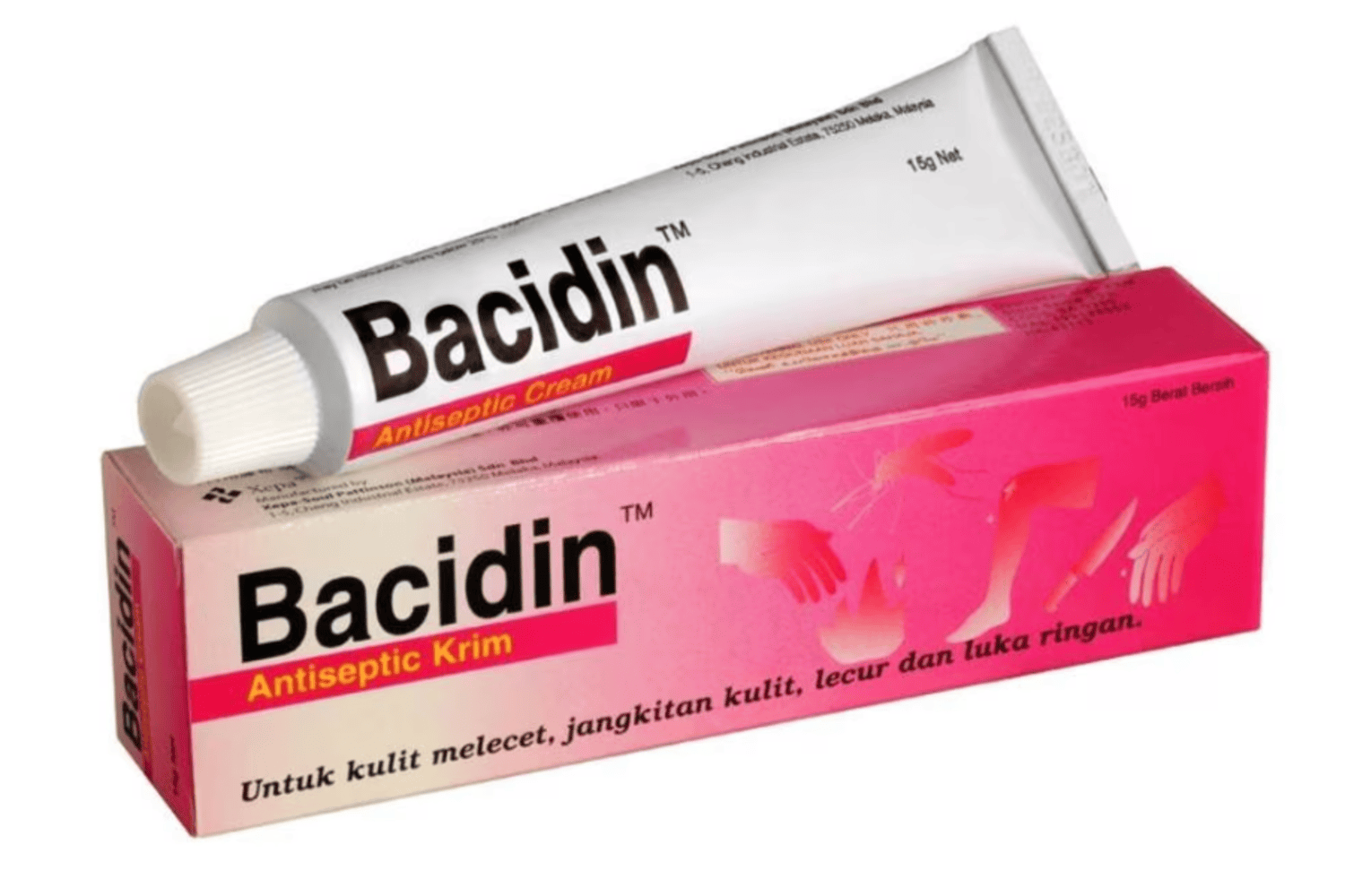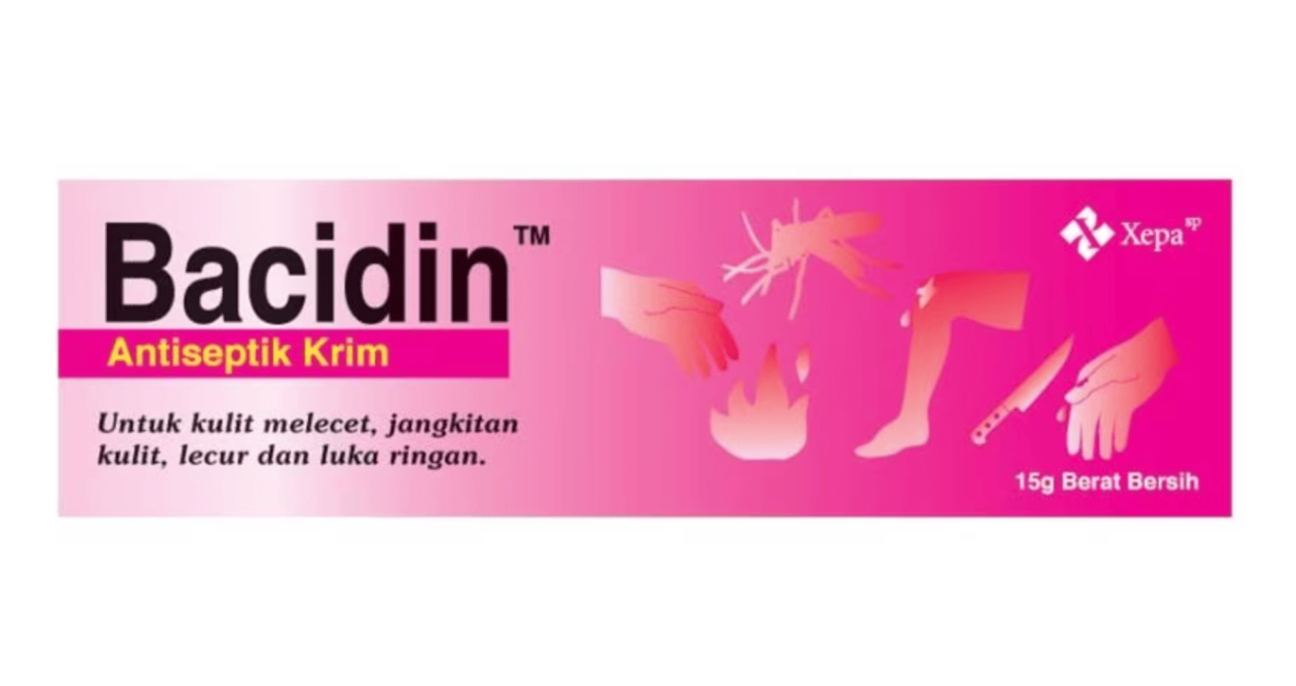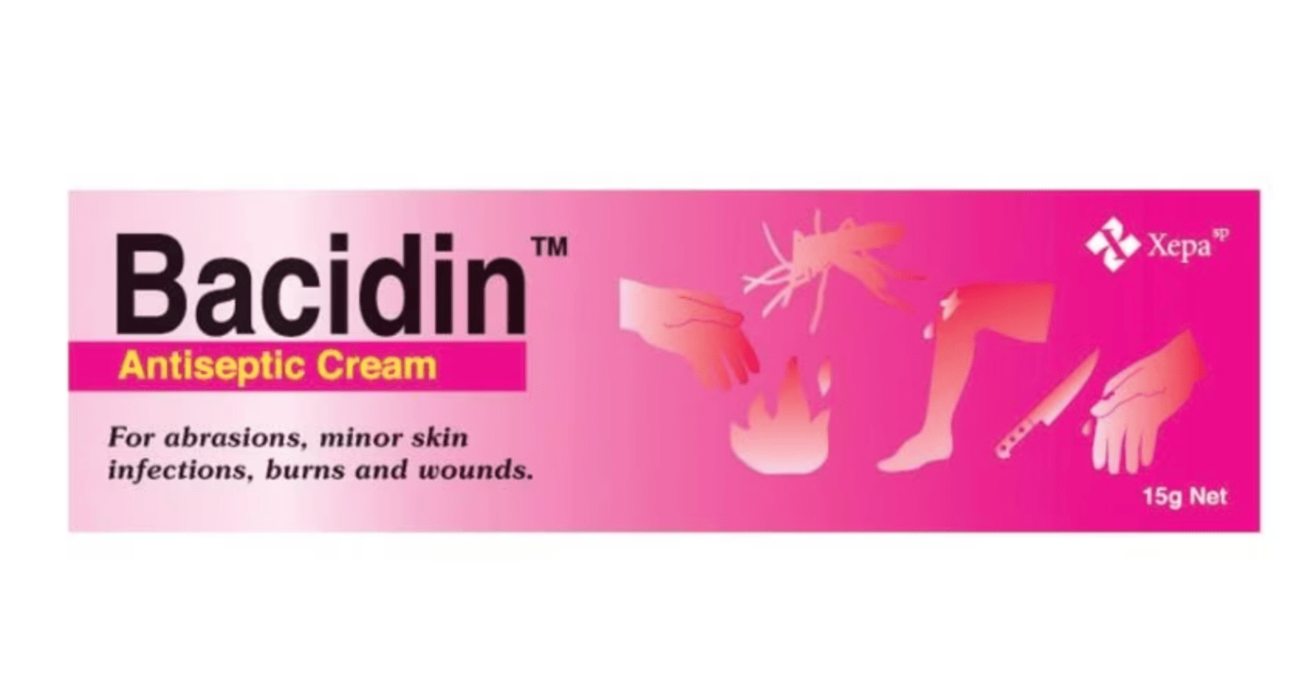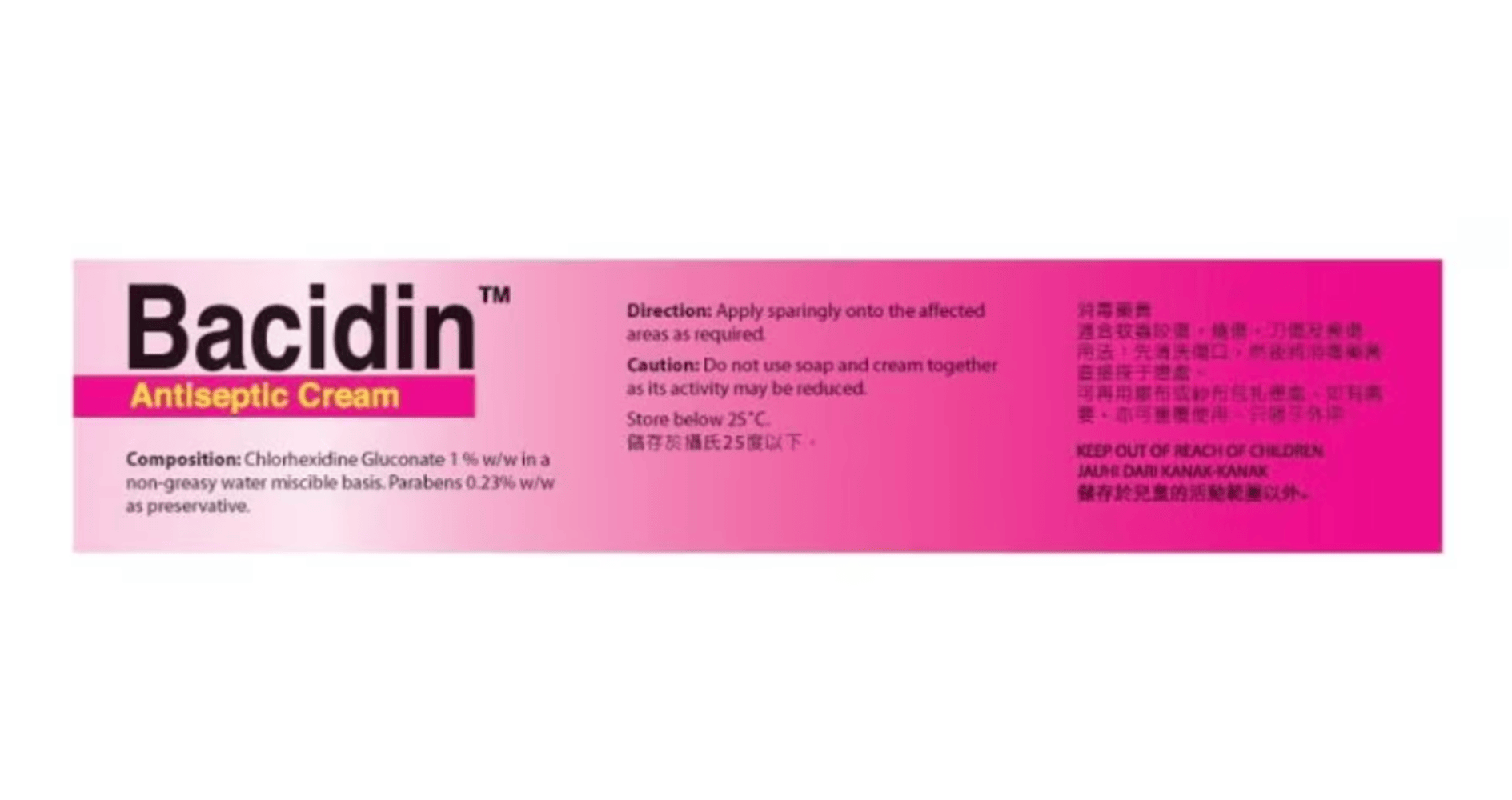 Bacidin Antiseptic Cream provides effective protection against infections. It contains Chlorhexidine Gluconate 1%, an antibacterial agent that is used as a disinfectant for wounds, burns, abrasions, cuts, minor skin infections and insect bites.