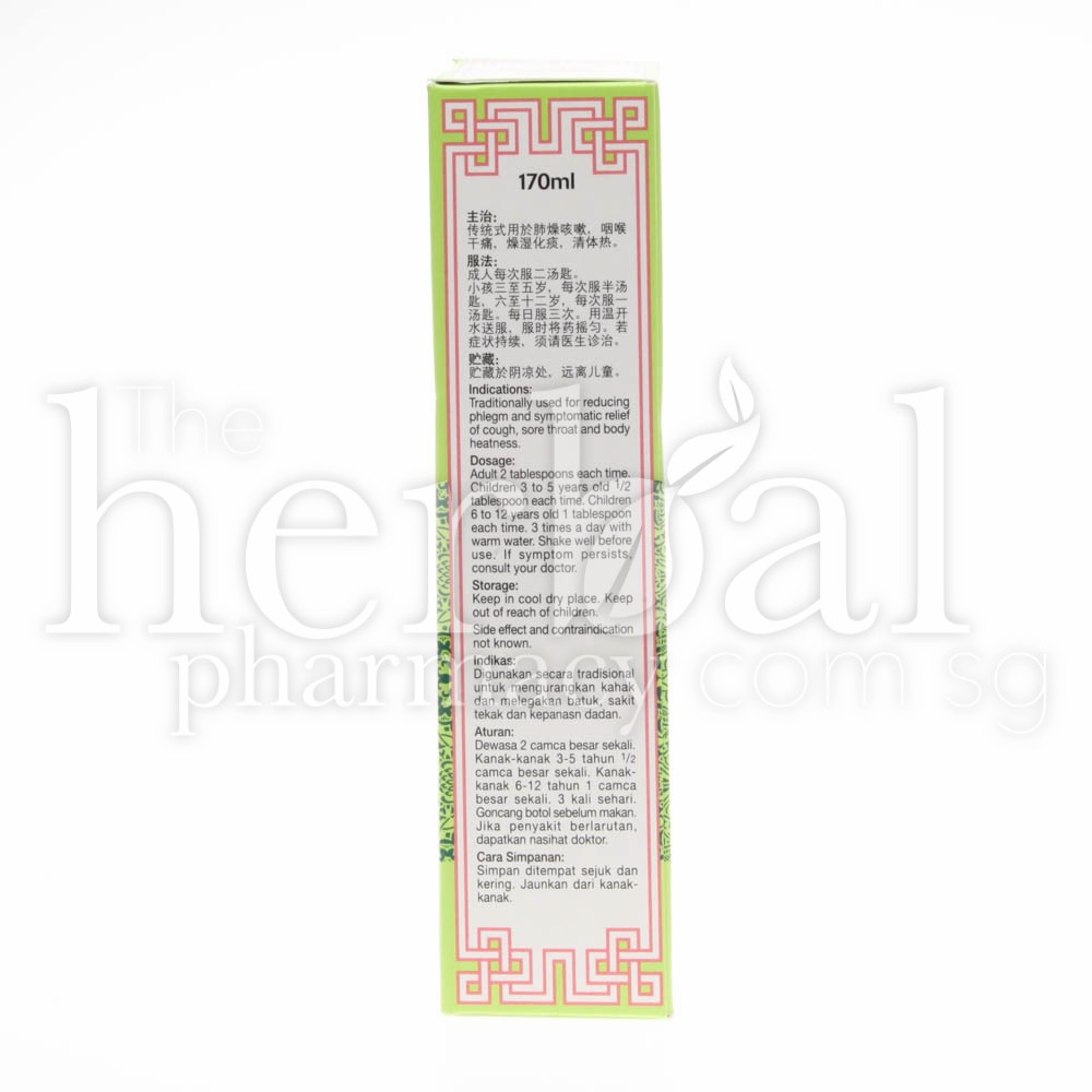 Traditionally used for reducing phlegm and symptomatic relief of cough, sore throat and body heatiness.