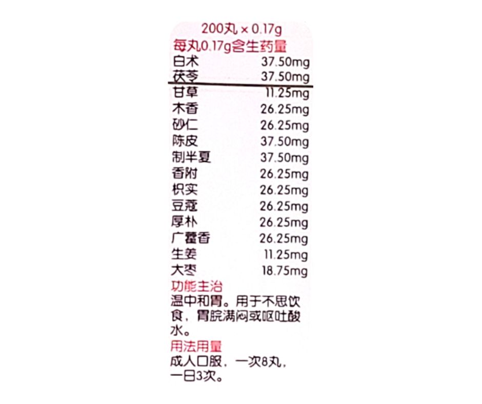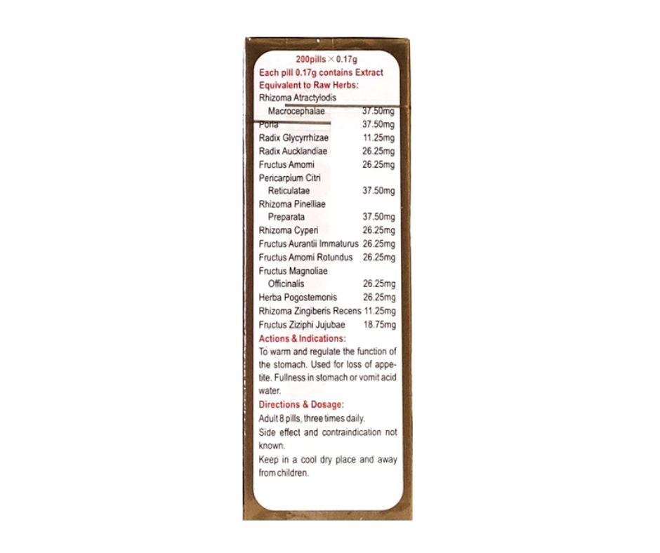 To warm and regulate the function of the stomach. Used for loss of appetite. Fullness in stomach or vomit acid water.