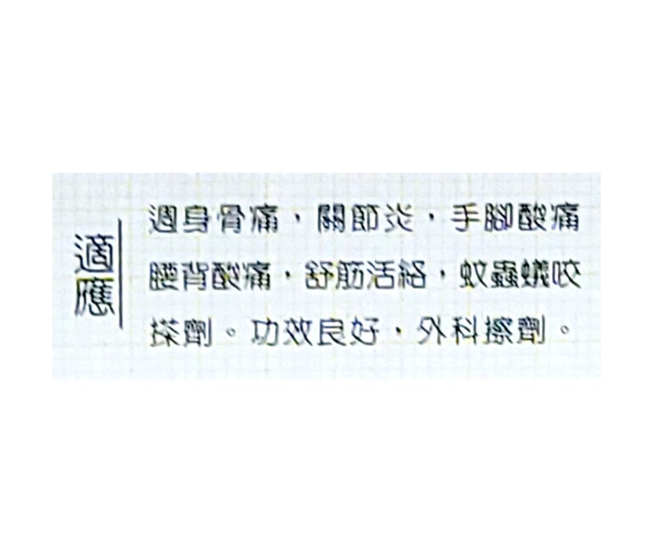 For Relief of aches and pain associated wth stiff shoulders, muscular fatigue, backaches, arthritis, bruises, strains and sprains.