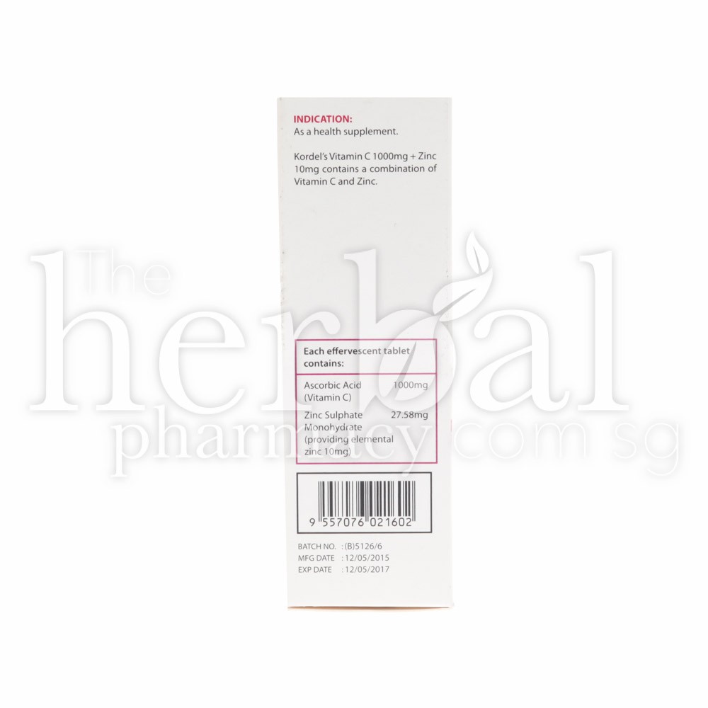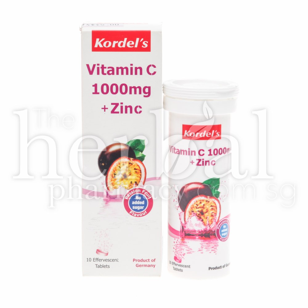 KORDEL’S VITAMIN C 1000mg + ZINC (PASSION FRUIT) EFFERVESCENT 10’s
