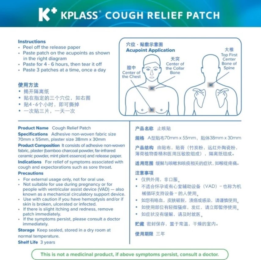 Kplass Cough Relief Patch for the relief of symptoms associated with cough and expectorations such as the sore throat. Paste with more comfort & Joy.