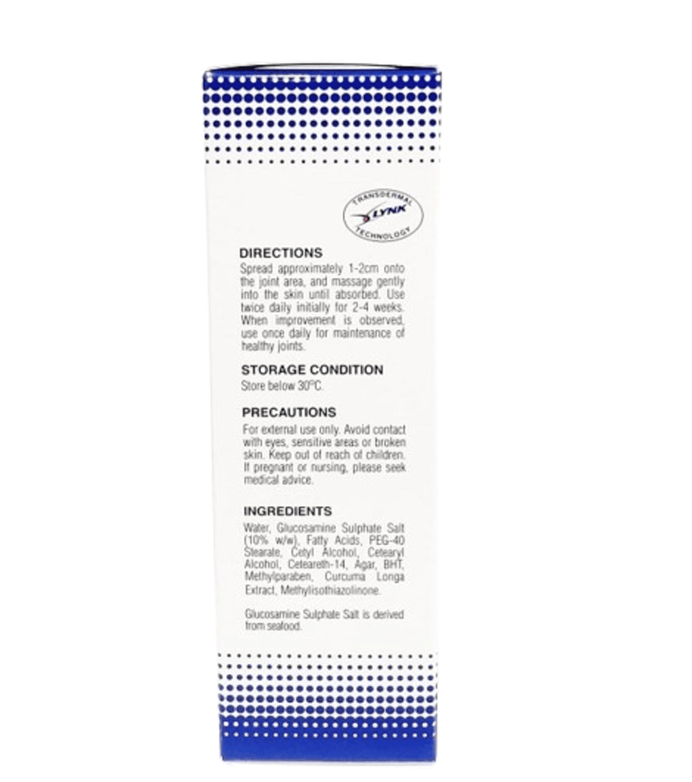 Spread approximately 1-2cm onto the joint area, and massage gently into the skin until absorbed. Use twice daily initially for 2-4 weeks. When improvement is observed, use only daily for maintenance of healthy joints.