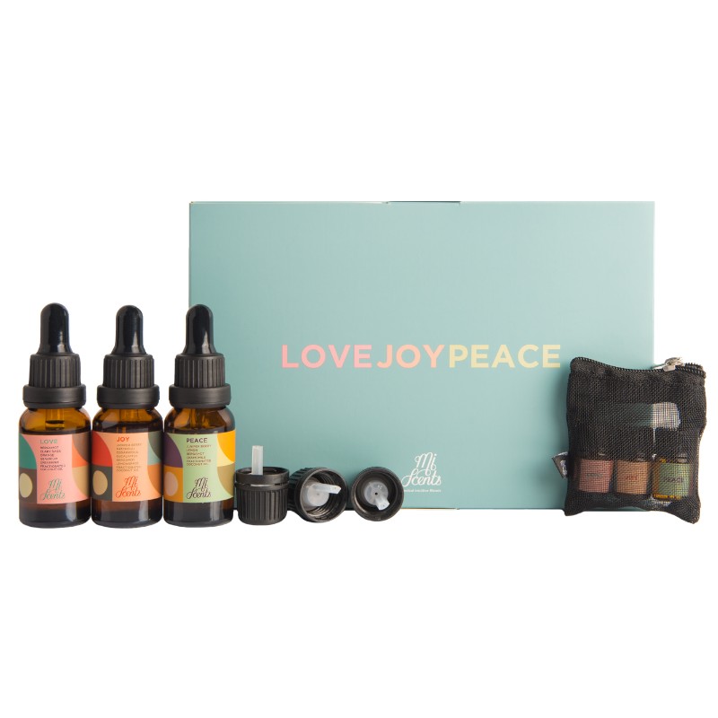 Complete your collection with a bottle each of Mi Scents LOVE, JOY and PEACE.