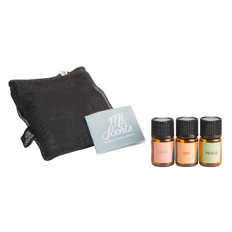 The founder of Mi Scents is a certified medical intuitive. Testing protocols were applied to identify the combination and proportion of oils required to reach the energetic frequencies of the emotions of Love, Joy and Peace to create each blend.