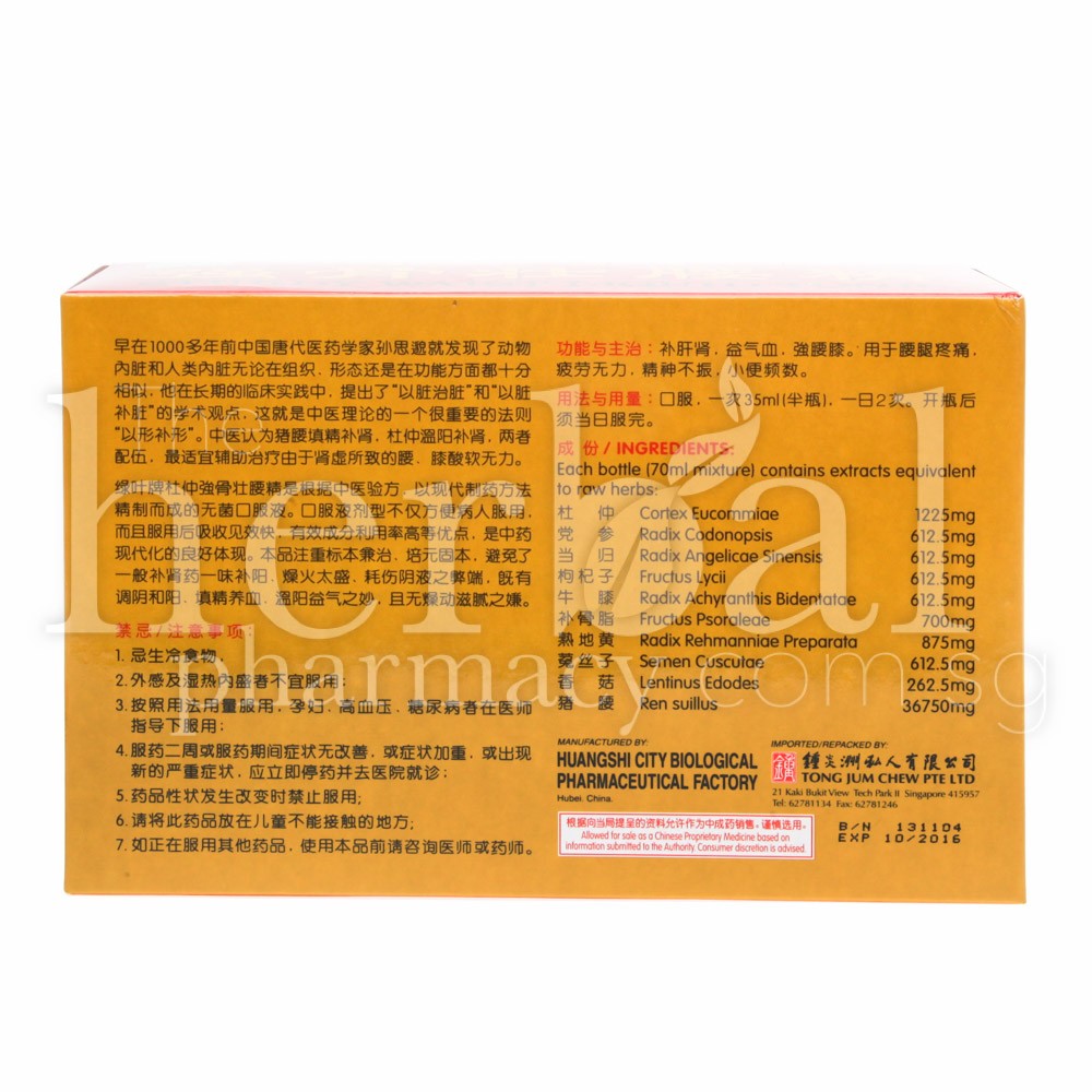 Relieves symtoms such as lassitude and pain in the loins and kness. Fatigue, listlessness and frequent urination.