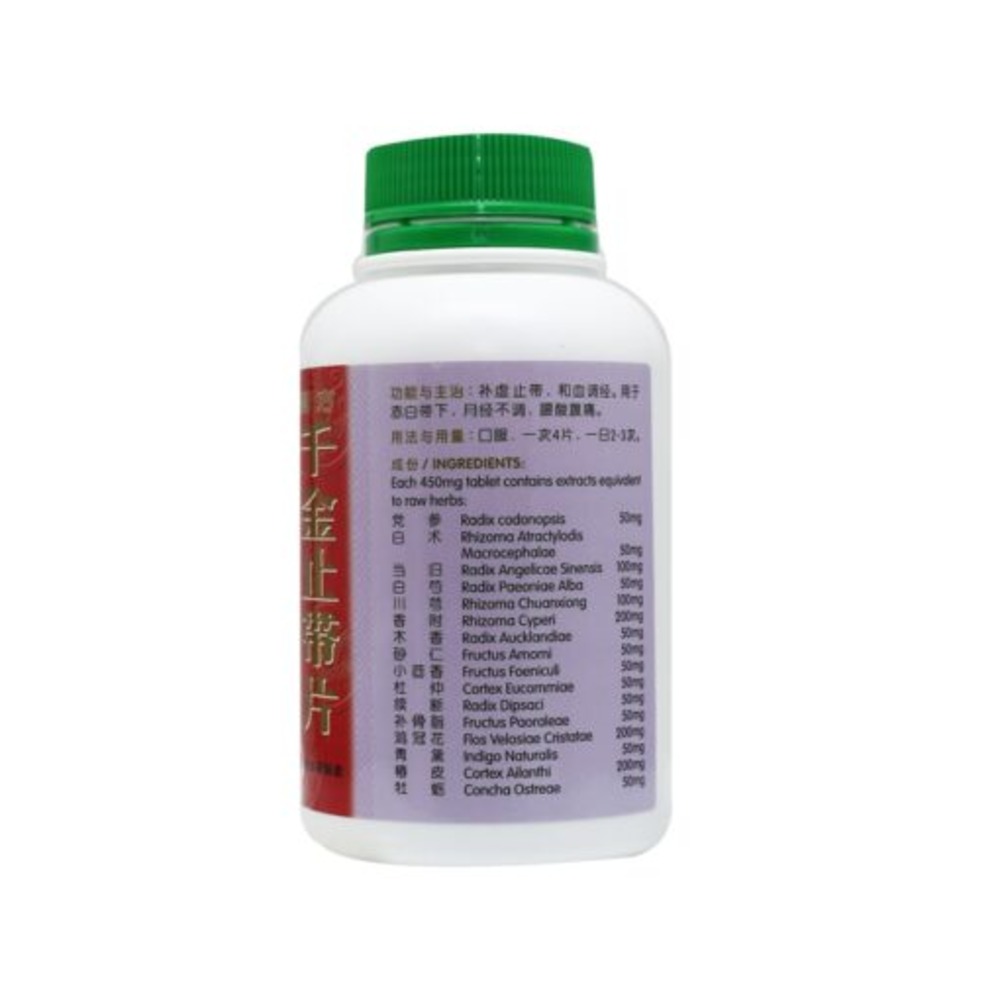 For leucorrhoea and irregular menstruation with aching back and abdominal pain.