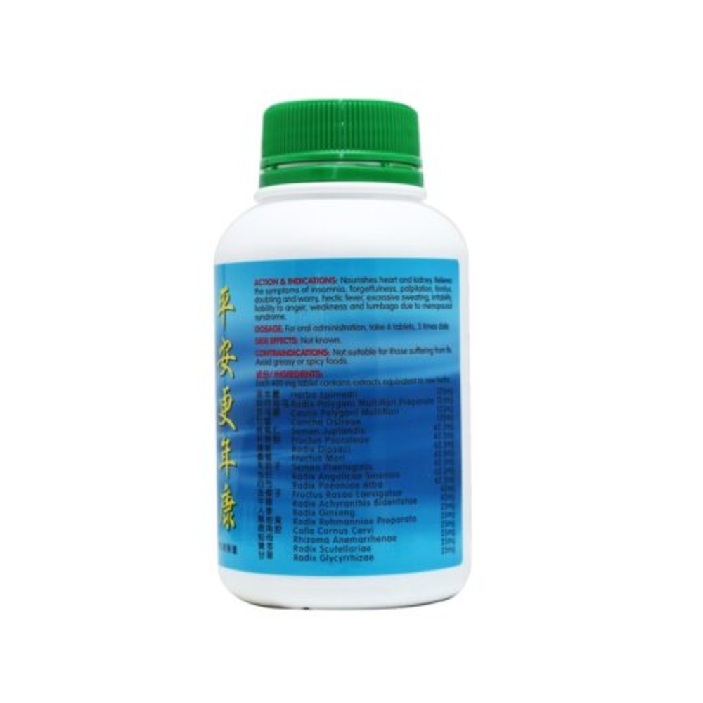 Nourishes heart and kidney. Relieves the symptoms of insomnia, forgetfulness, palpitation, tinnitus, doubting and worry, hectic fever, excessive sweating, irritability, liability to anger, weakness and lumbago due to menopausal syndrome.