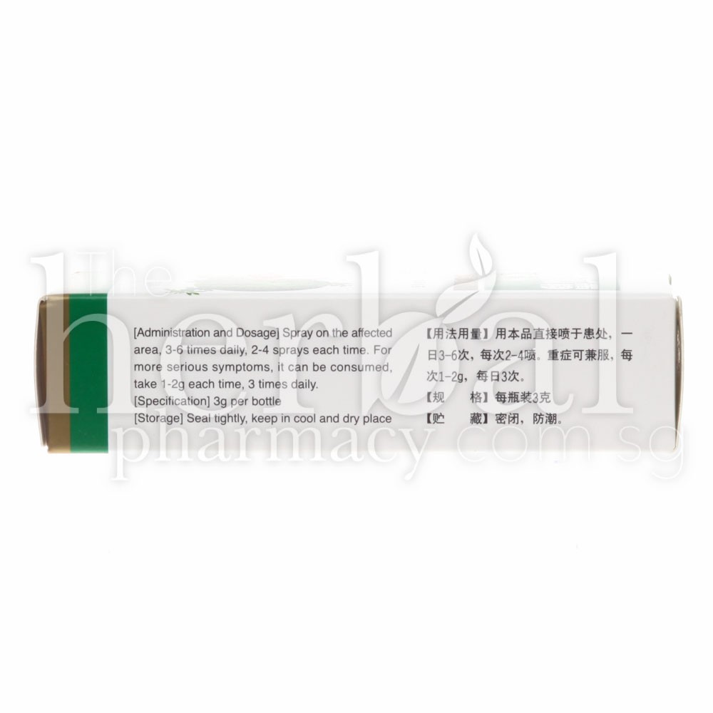 Spray on affected area, 3-6 times daily, 2-4 sprays each time.