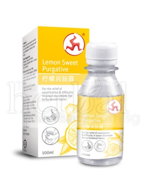 Three Legs Lemon Sweet Purgative is a transparent liquid filled in PET bottle with lemon flavoured for better taste profile. It can soften the stool and improve bowel movement.